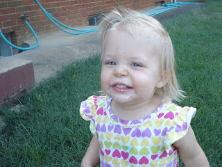 We decided to do a little birthday thing for Karlee before we left. She LOVES pizza so we had pizza for dinner and then cake and ice cream. She wasn't so sure what to do with the cake but she quickly figured it out! I can't believe she will be 1 in just a few days on the 11th! She is growing up so fast!