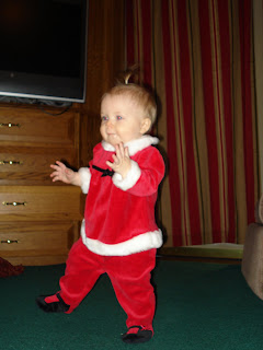 Karlee has changed a lot since we have been here. She started crawling at 7 months and picked up on it very fast. Then at about 8 months she started walking along furniture and would get where she wanted to that way. Soon after that she really showed interest in the stairs and figured out how to climb up them really fast. But she took a while on learning how to come down. But she is a champ at it now. Then, at 10 months Karlee started walking! She was pretty shaky at first of course but really mastered it quickly. She walks everywhere now. And if she falls down, she gets right back up and keeps going. I can't believe she will be 1 in less then a month. This whole year has gone by so fast.